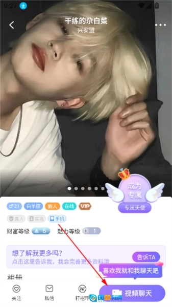 进入心仪用户的个人资料页面后,你可以查看他们的详细信息以及发布的动态。之后,点击页面上的“视频聊天”按钮,即可开启互动。