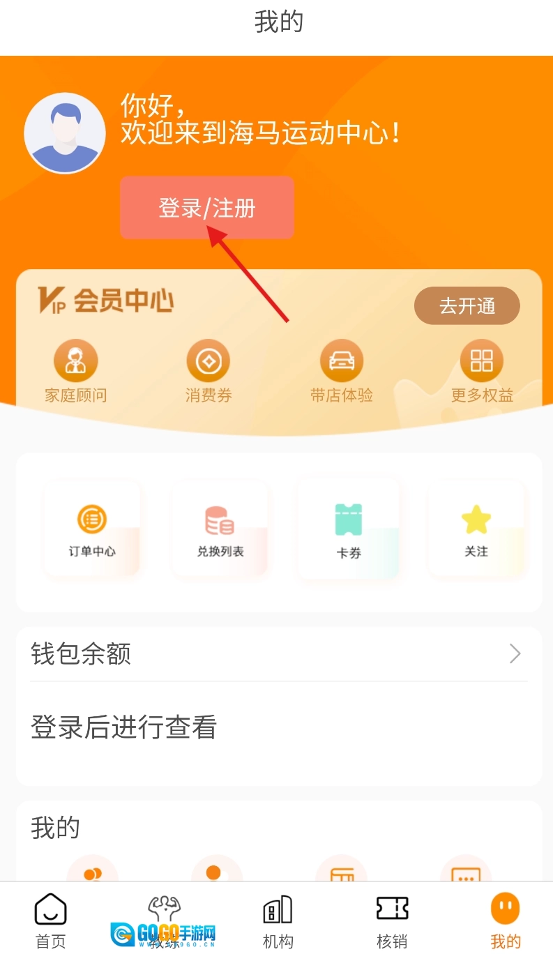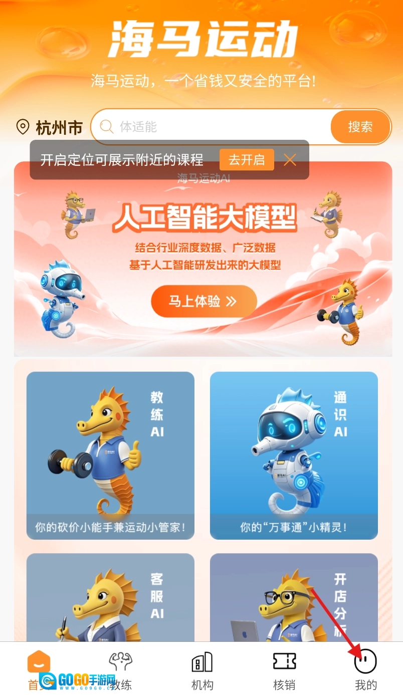 打开海马运动应用后,在底部的菜单栏里找到“我的”这一选项,点击它就能进入个人界面了。