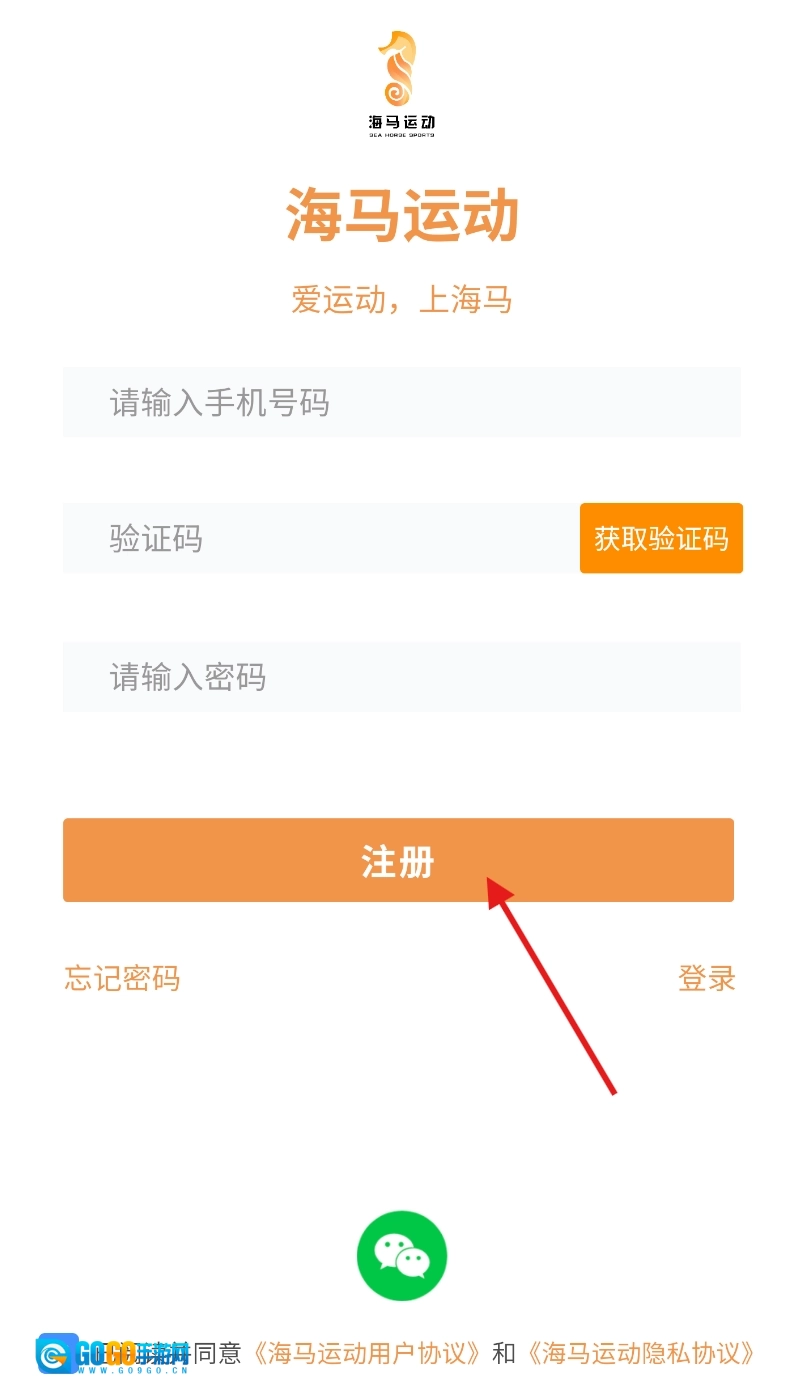 注册流程如下:先在应用商店里搜索“海马运动”,下载安装好该应用后,用手机号进行账号注册,注册完成即可登录使用。