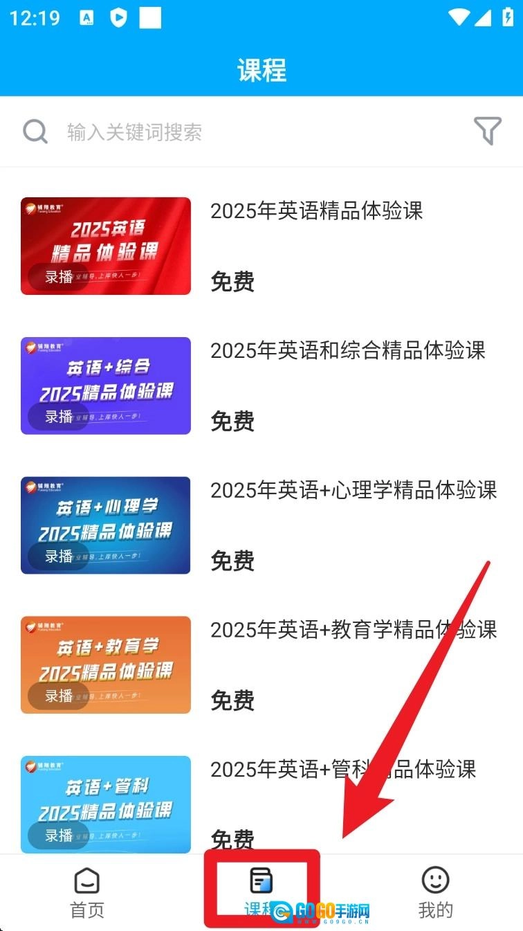 切换到「课程」标签页,浏览并挑选免费体验课程,点击课程封面就能进入学习界面。