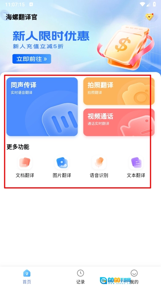 首页整合了多种翻译模式,您可根据实际需求,一键快速进入对应的翻译功能。