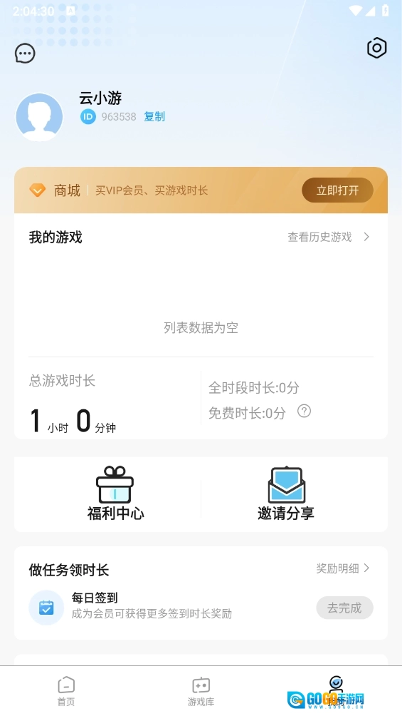 如图所示,这里包含了多个不同类型的任务,只要点击右侧的“去完成”按钮,就能获取游戏时长。