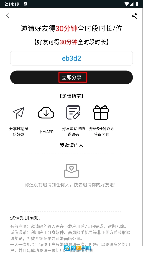 最后还能邀请好友一起畅快游玩,这样就能获得30分钟全时段的时长。