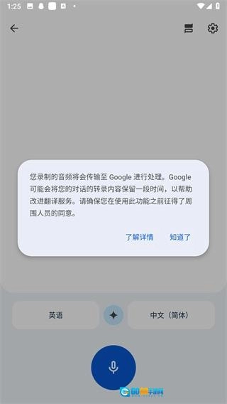 如图所示,需同意将音频传输至谷歌进行处理,以此助力翻译服务的优化。