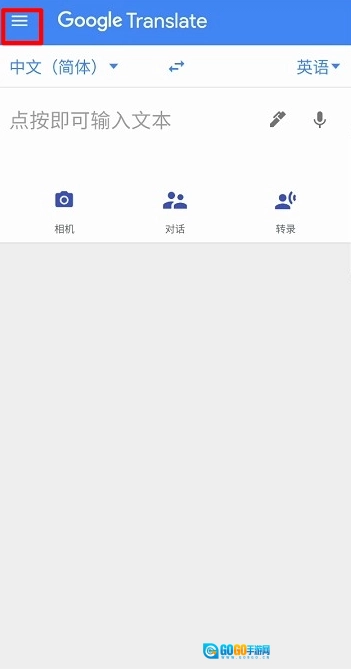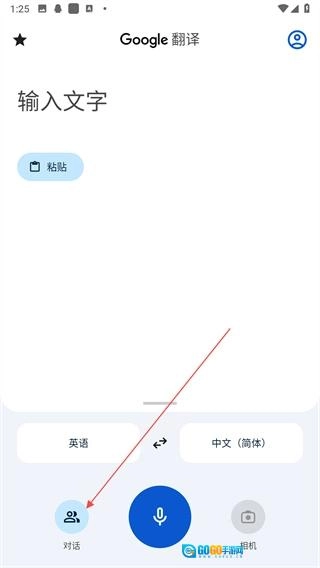 先安装谷歌翻译应用,打开后进入主页,接着点击左下角的“对话”选项。