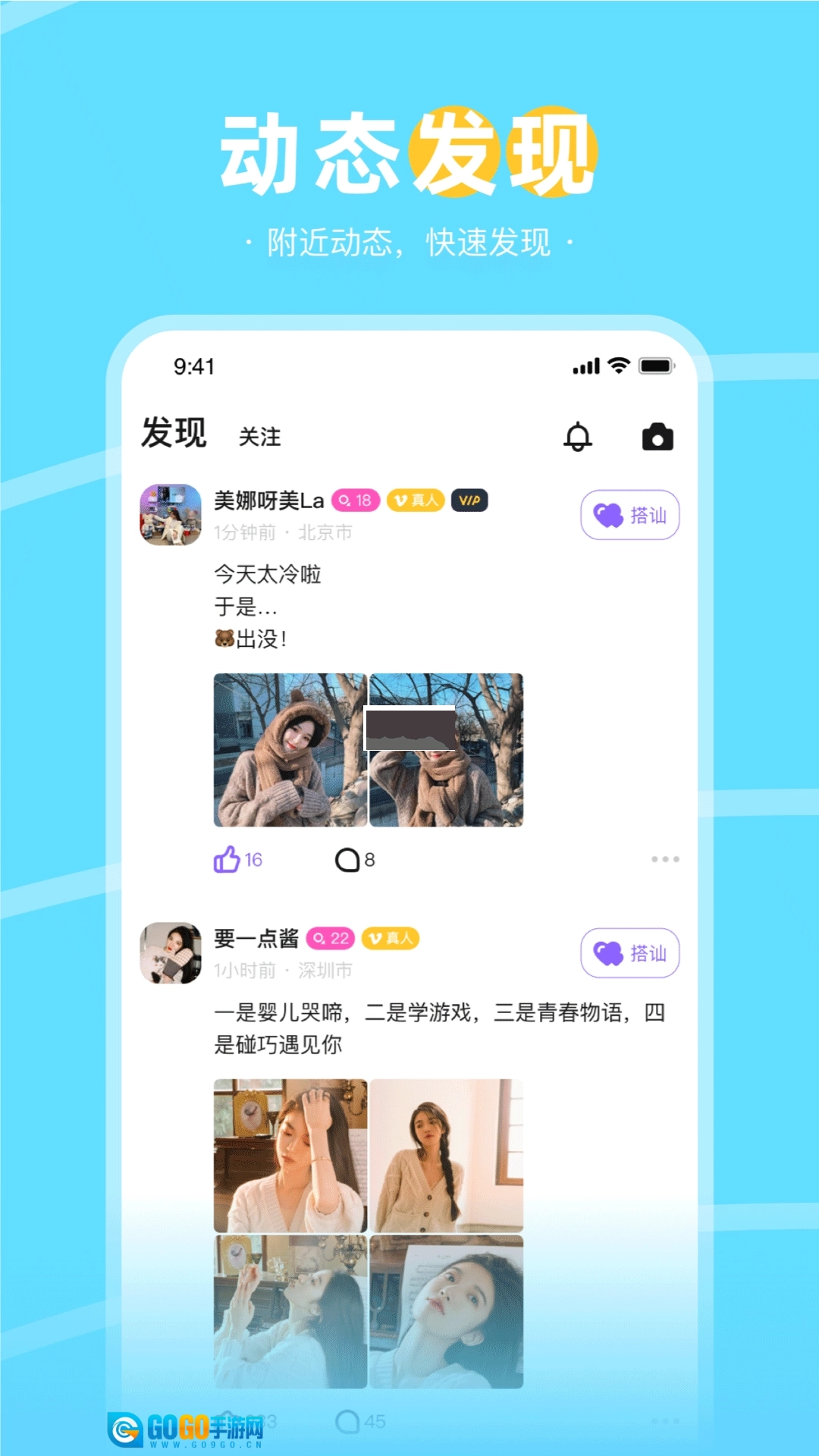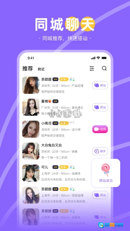真人语音聊天交友,兴趣交友,相亲约会,处CP找老铁,开黑游戏,同城交友,我们通过对基础资料、个人签名、地理位置等数据计算帮你推荐最适合你的人。