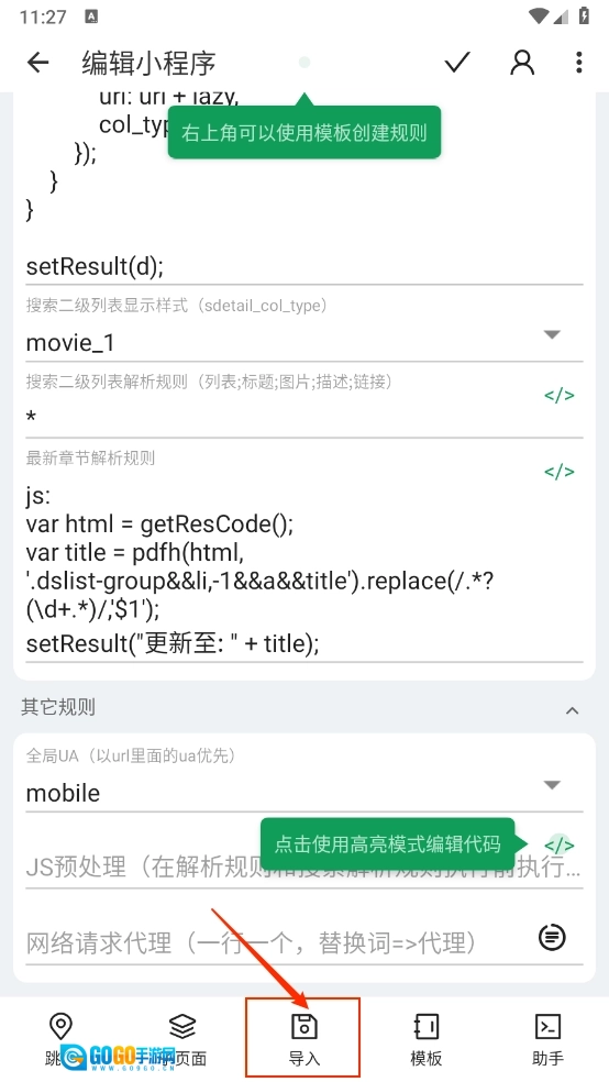 接下来会自动跳转到编辑小程序的页面,点击底部的“导入”按钮。