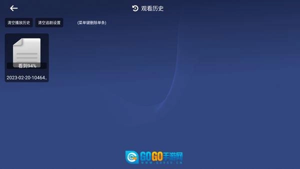 播放历史的操作方式如下:在文件管理界面时,将焦点移至最左侧,接着朝观看历史的方向移动,即可进入播放历史界面;进入播放历史界面后,按下菜单键就能删除单条记录。