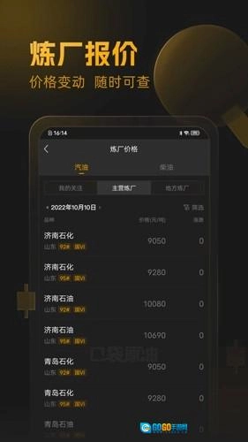 同步主要和当地炼油厂的报价,随时查看价格变化。