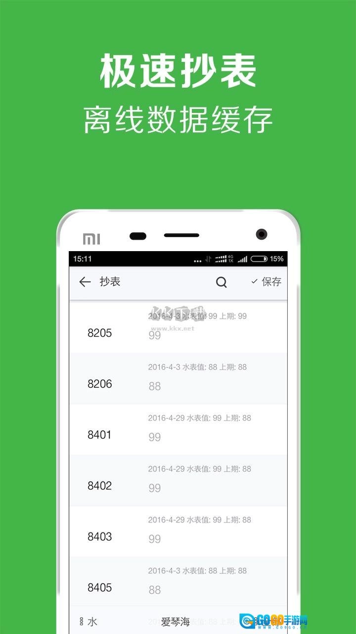 在线抄表时,只需点击抄表功能,就能把房源里的水电用量等信息记录下来。