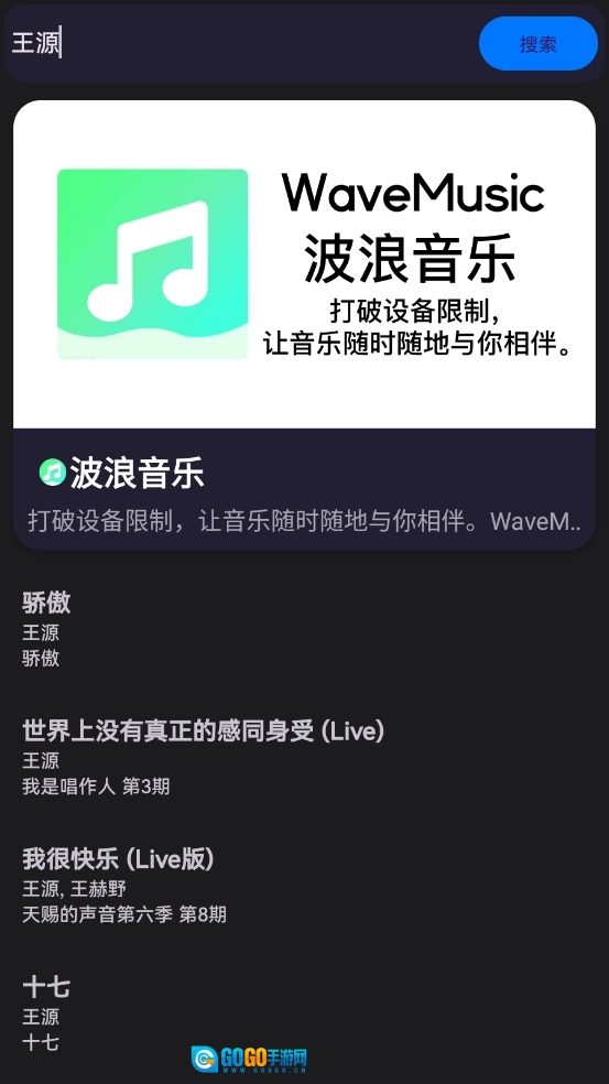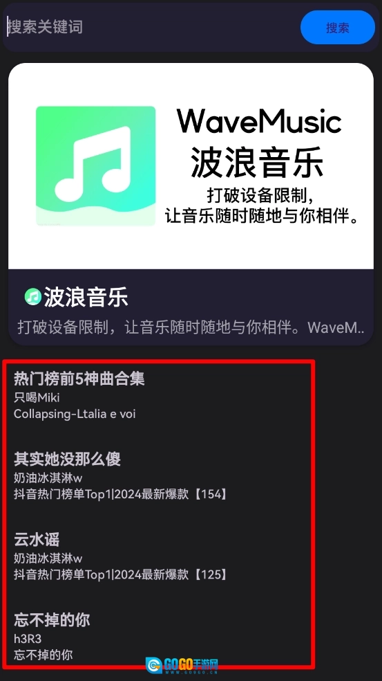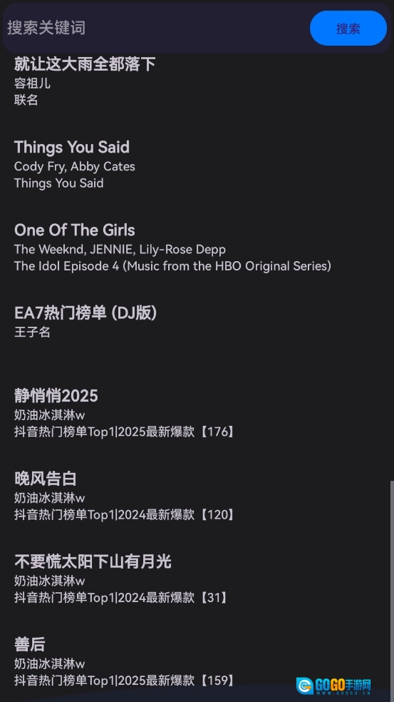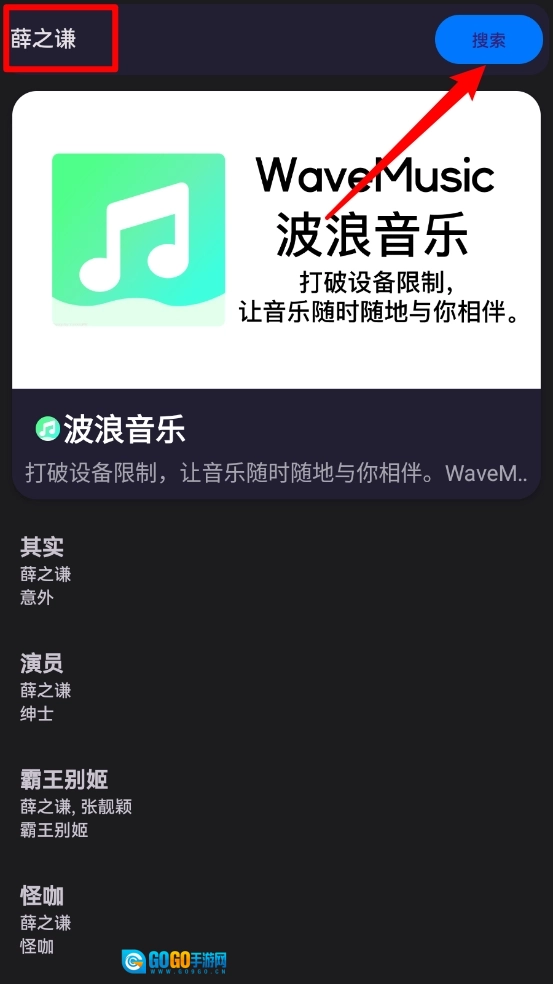 还能够点击顶部的搜索框,输入歌手名称与关键词来查找自己喜爱的资源。