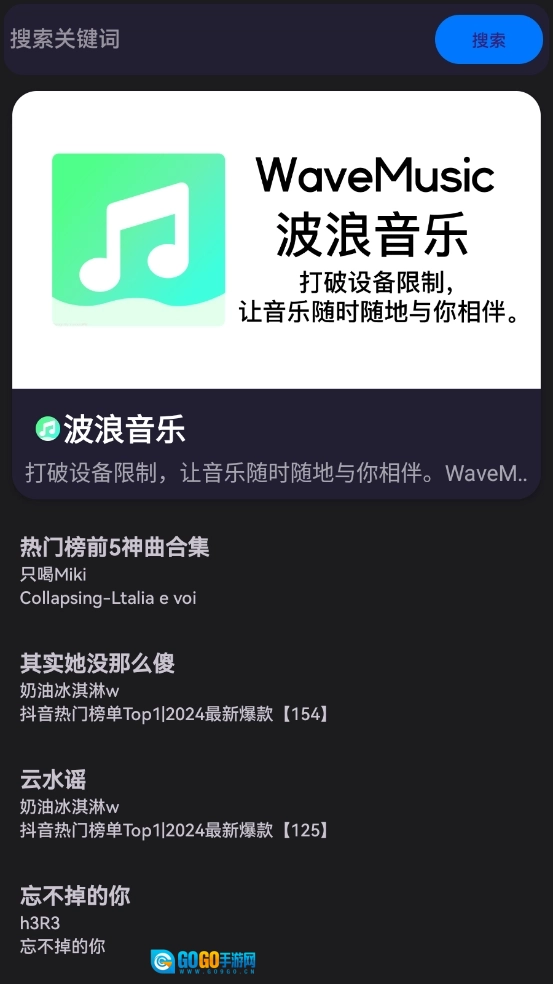 波浪音乐是一款专为智能手表设计的音乐播放应用,只需一键就能安装到手表上使用,在手表端也能流畅地播放在线音乐。它的界面简洁清爽,操作简单顺滑,适配了多种主流手表型号,不管是运动时还是日常佩戴,都能让你随时畅享听歌的乐趣。