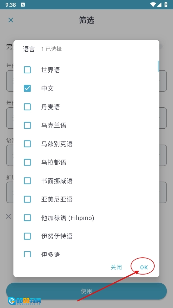 选择“中文”后点击“ok”,返回后点击“使用”即可。