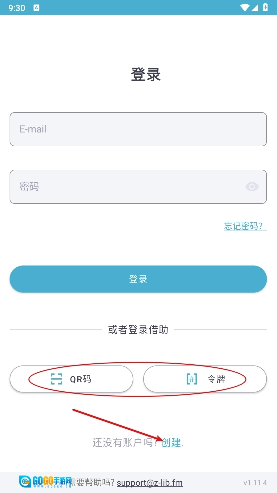 如图所示,进入登录页面后,可通过QR码或令牌进行登录,随后点击“创建”按钮。