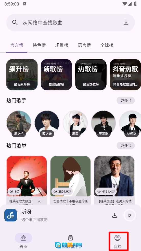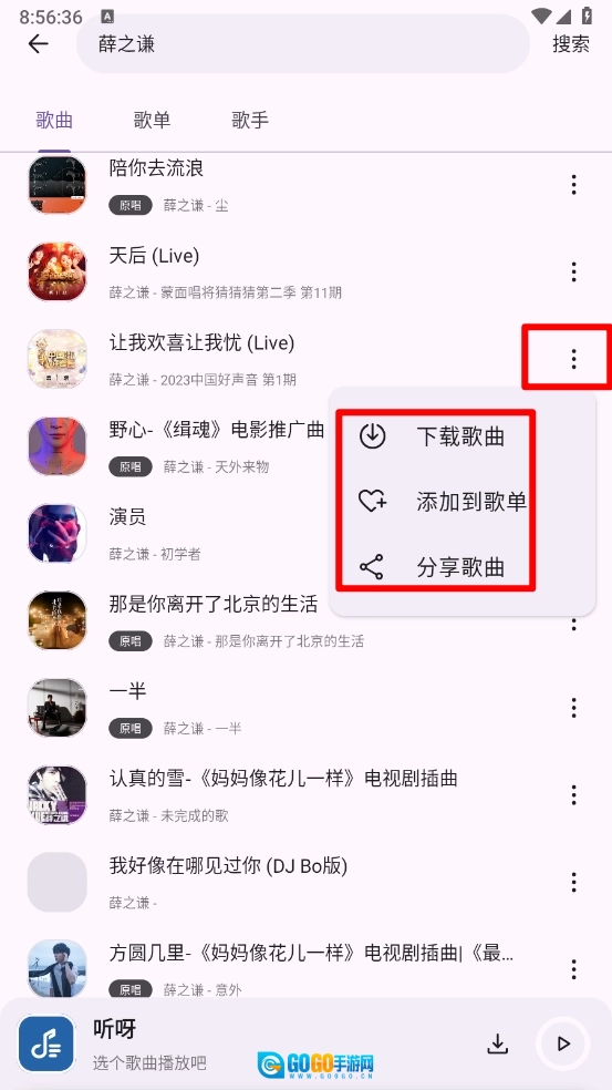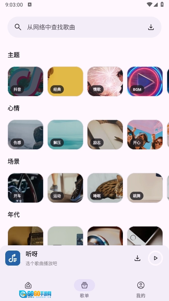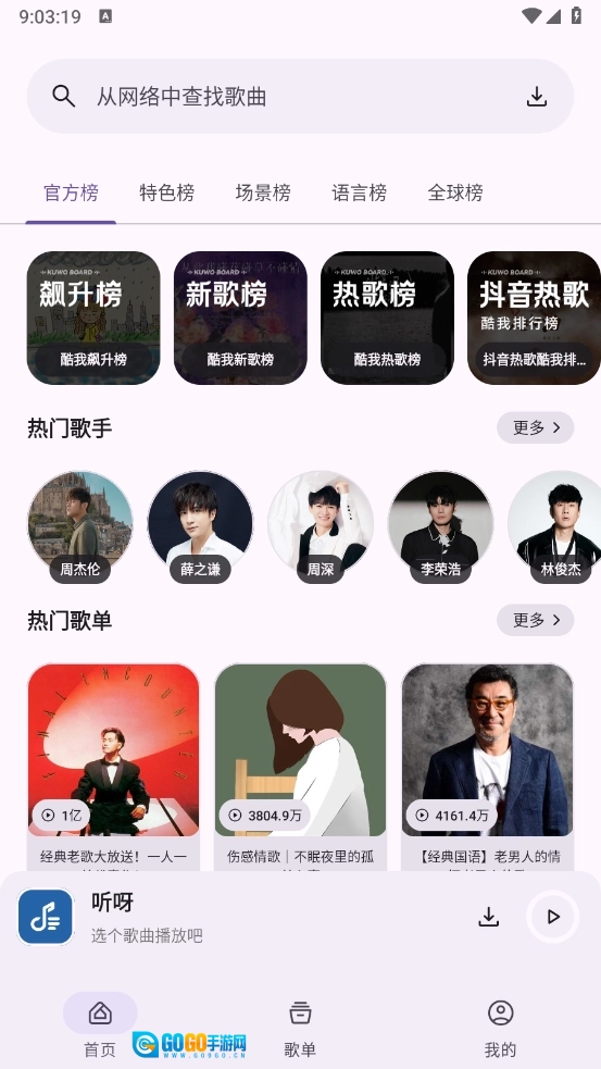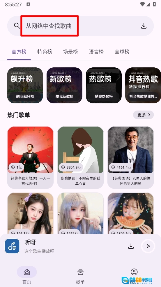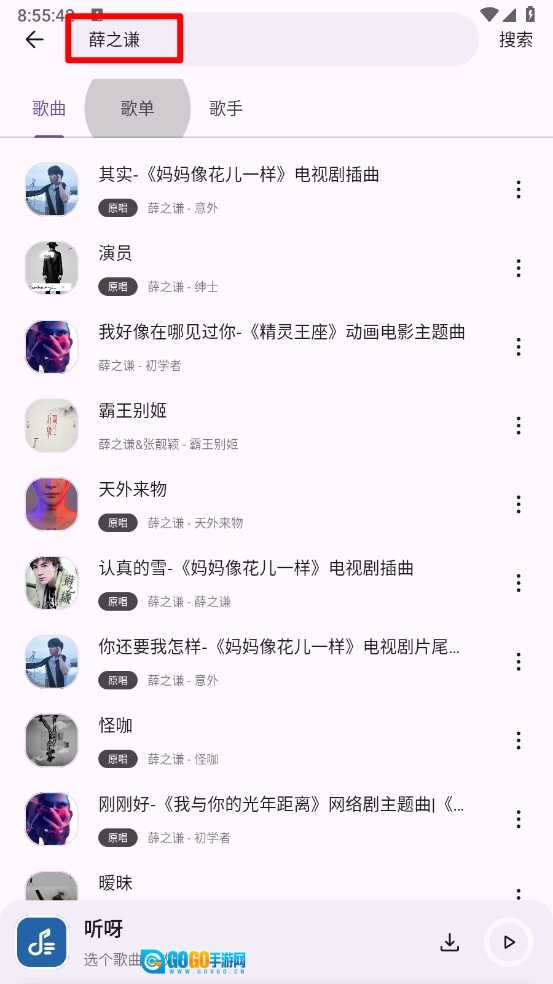 输入歌手、歌名、关键字等内容,都可以查看相关的歌单资源。