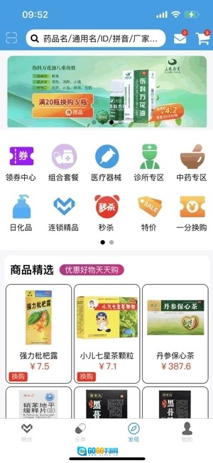 设有专属促销板块,如限时秒杀与换购专区,定期推出高性价比商品,以更优价格购入药品。