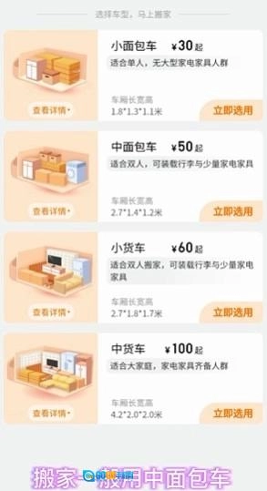 选择车型时,可依据物品数量来挑选合适的车型。若物品较少,中面包车是不错的选择;要是物品较多,或者有冰箱这类大家电,那就选择小货车。
