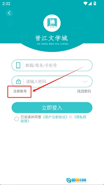 首次使用的新用户可通过下方的“注册账号”按钮注册新账号。