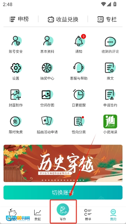需要注意的是,登录账号后得先去“账号安全”里设置密保才能开始写作,设置密保的教程就在上面!