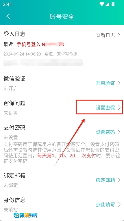 然后在“密保问题”中选择“设置密保”