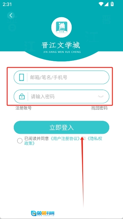 进入软件首页后,点击“我的”,填写账号和密码,接着点击“立即登录”,即可登录自己的账号。
