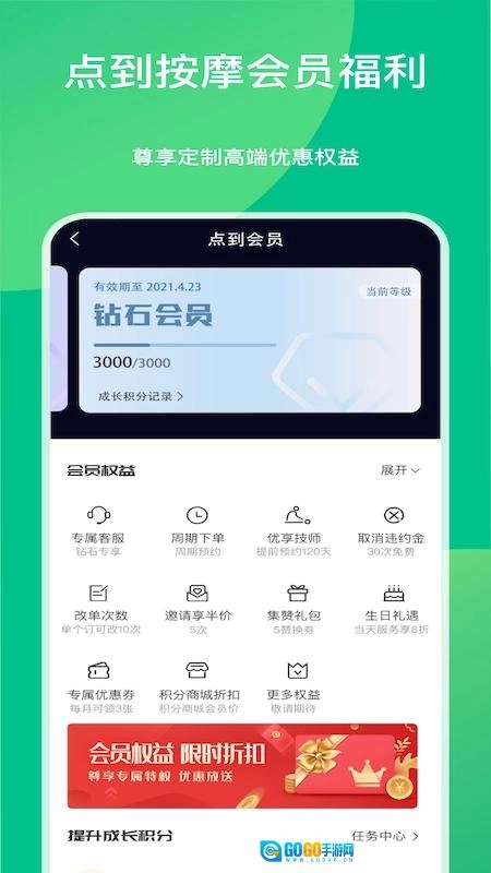 点到是北京彩虹乐享信息技术有限公司精心打造的专业易用预约上门按摩软件,采用全新上门服务模式,涵盖中医按摩、儿科按摩、康复理疗、修脚/SPA、开胸/哺乳、艾灸/刮痧等丰富健康项目,全方位满足用户需求。平台所有技术人员均通过实名认证、健康认证及资格证书认证,且获得高融资本、盈动资本、58同城等知名机构投资,确保服务真实可靠。感兴趣的朋友,欢迎前来体验!