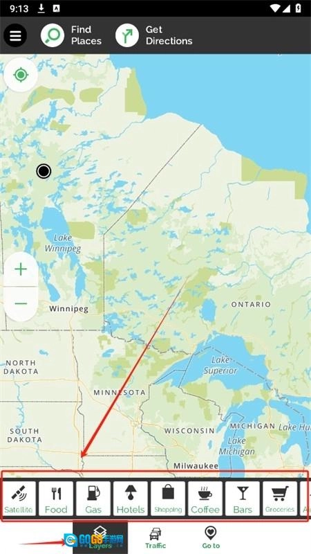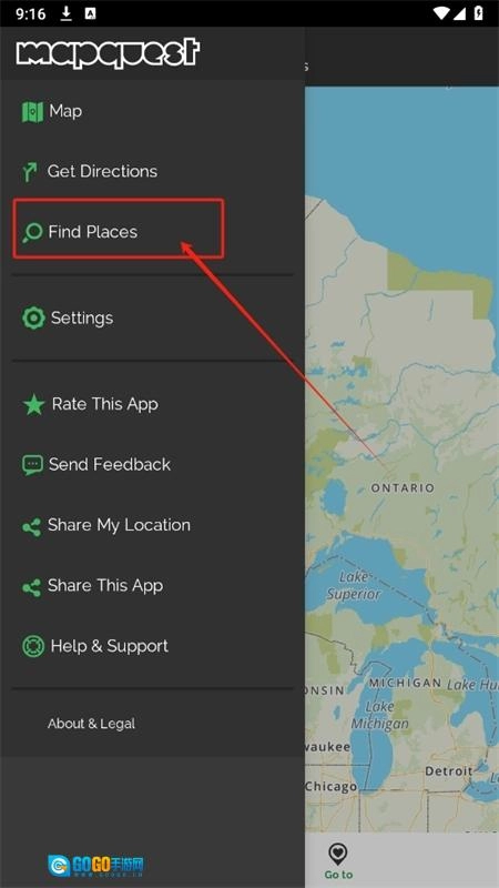 点击页面左上角的三条横线按钮,即可进入菜单栏界面;接着点击“Find Places”选项,就能依据自身需求搜索想要前往的地点。