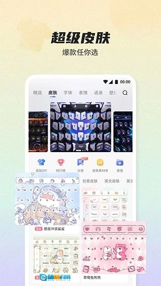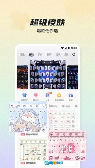 个性皮肤:这里有各式各样炫酷、可爱又搞怪的皮肤供你挑选,涵盖中文、英文、日文、韩文等多种语言风格,不管你是哪类语言爱好者,都能找到合心意的。