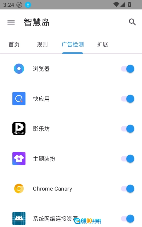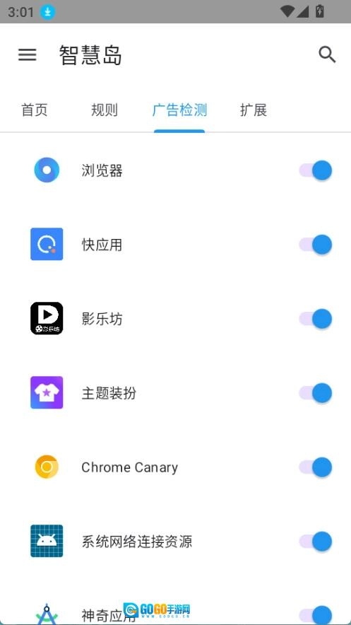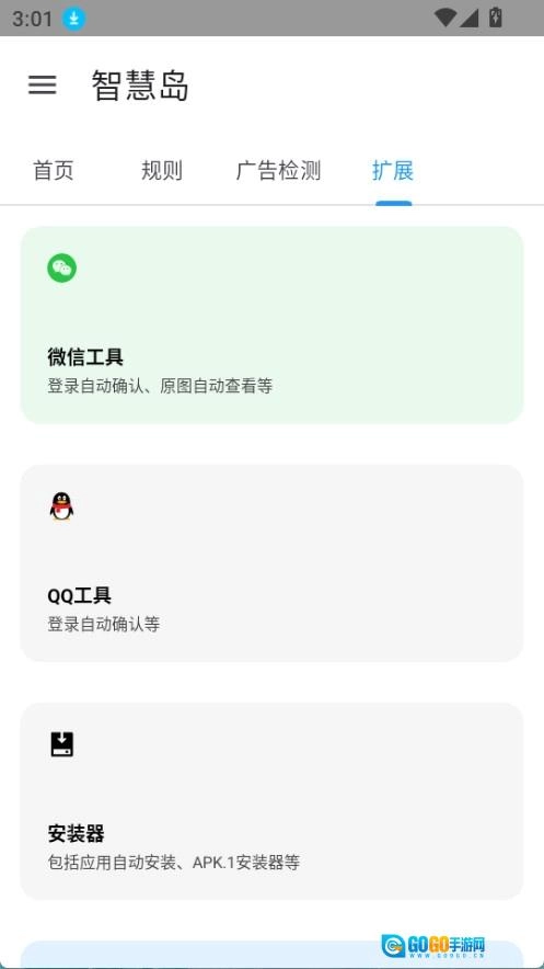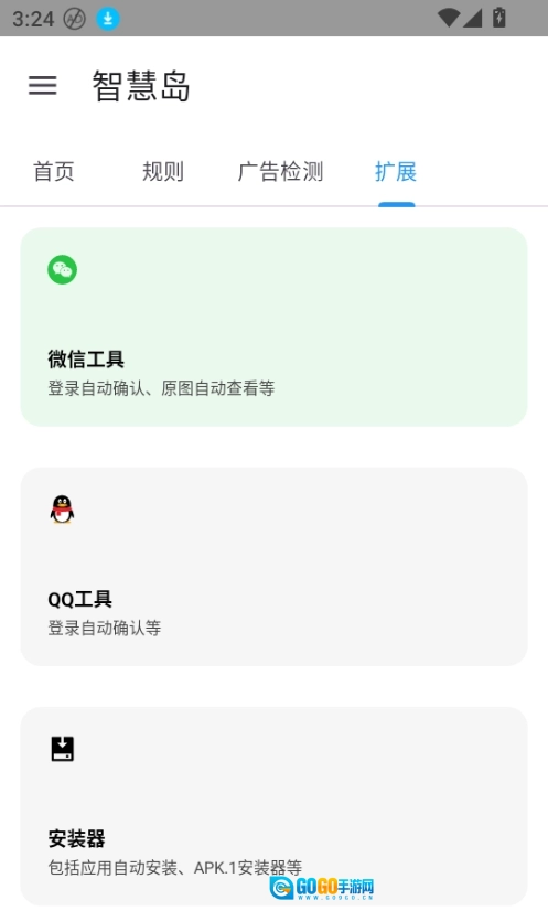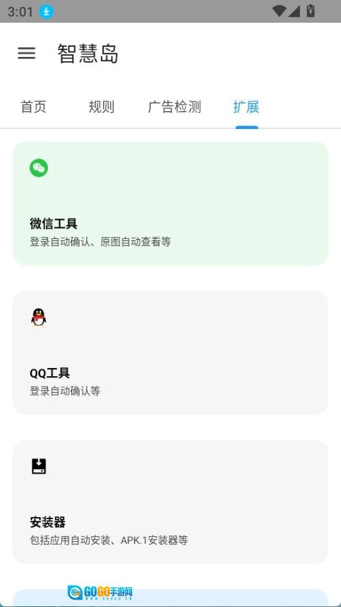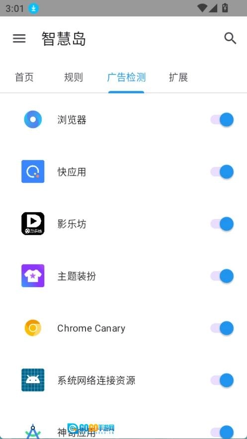 智慧岛是一款实用性很强的手机去广告应用,用户能够自行添加广告过滤规则。其最新版本可对手机中已安装的应用进行广告检测,此外还配备了微信工具、QQ工具等扩展功能。该软件操作简便,在此推荐给大家使用。