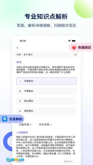 所有试题都配备了详尽的答案解析,能助力用户深度领会法律条款与相关考点,进而增强解题能力。