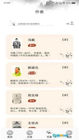 软件设有作者信息浏览功能,可呈现各朝代诗人的详尽介绍,助力用户深入认识这些诗人,进而明晰其诗歌的创作背景。