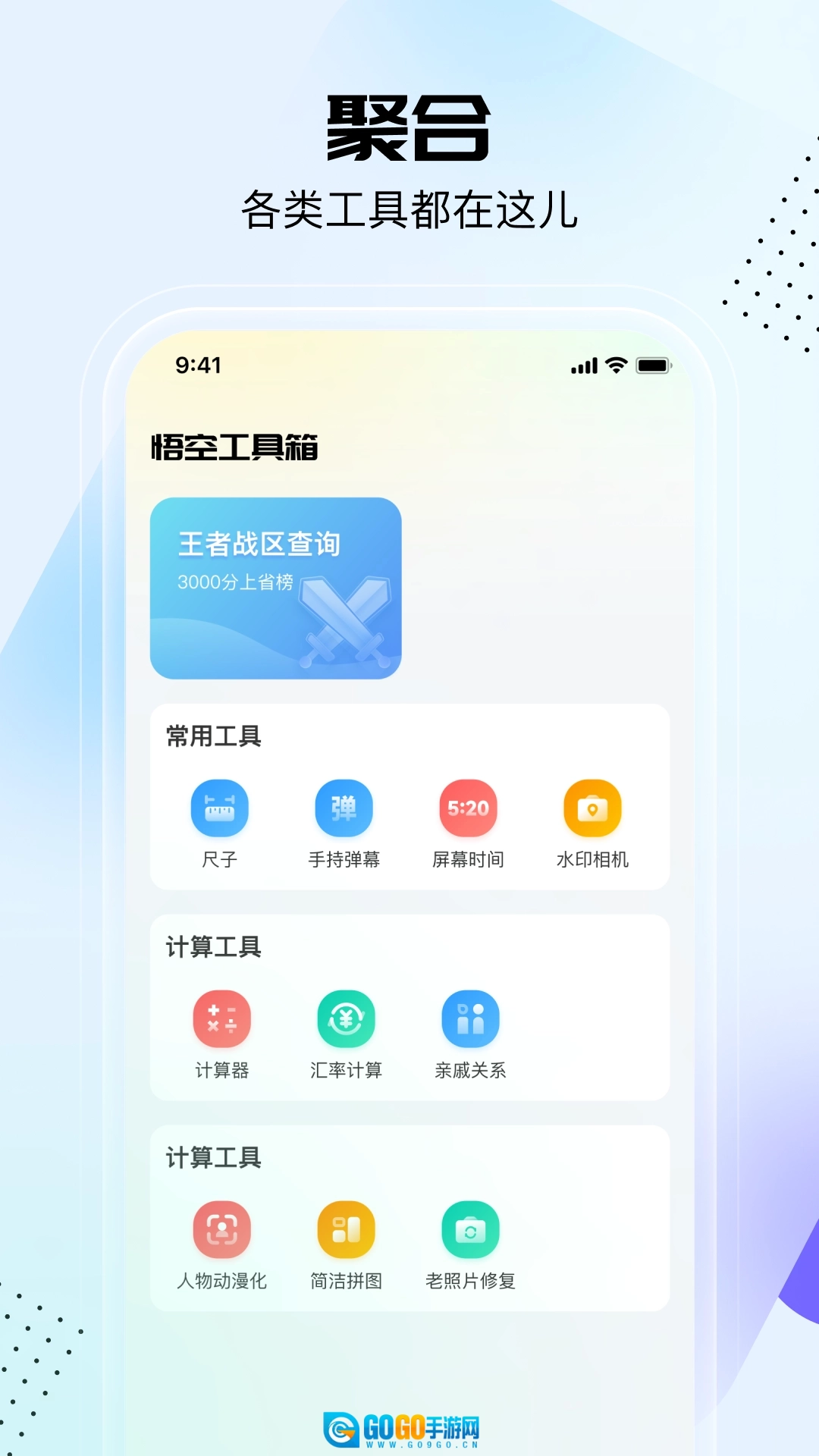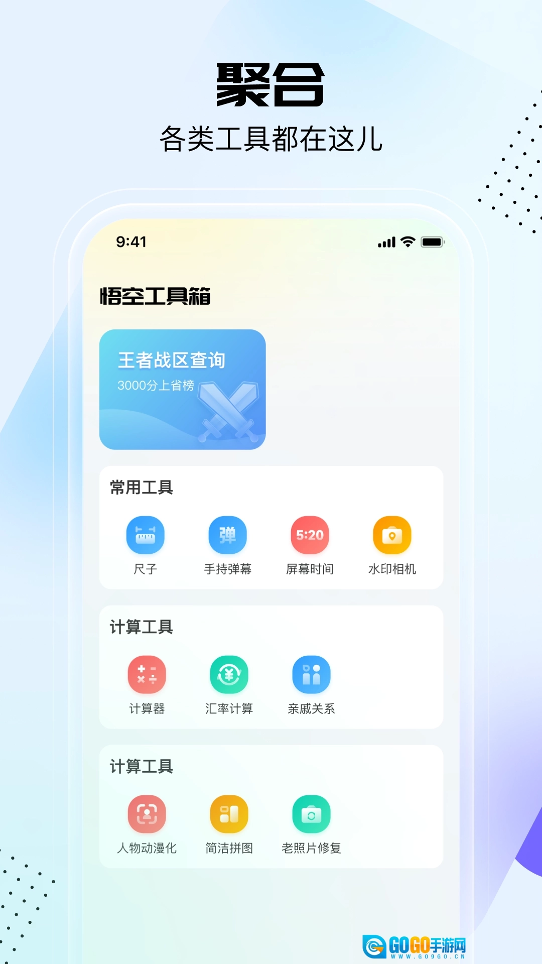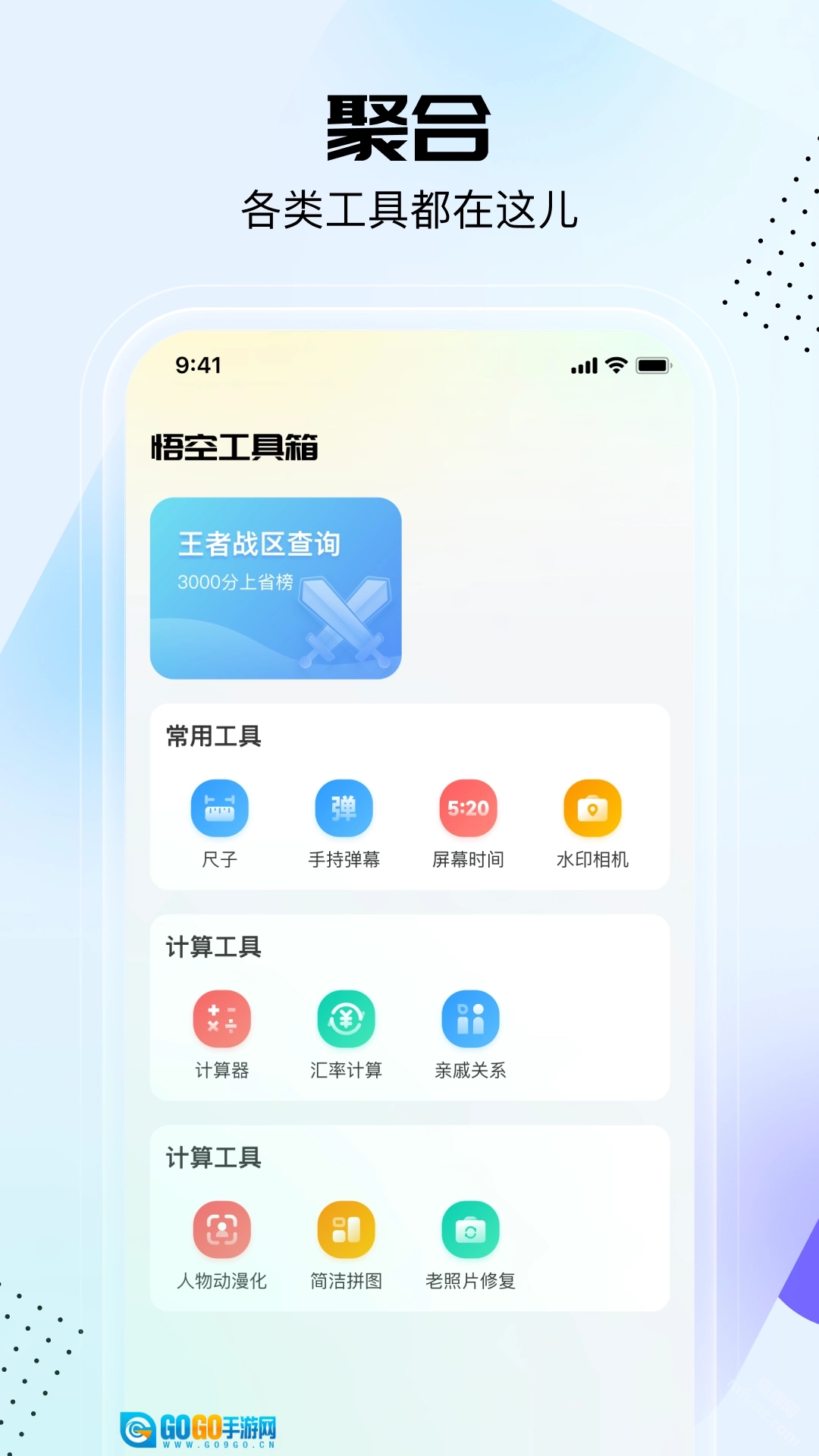 悟空工具箱功能十分强大,包含了日常、图片、查询、游戏、计算、亲戚关系、老照片修复等丰富多样的实用工具类别。