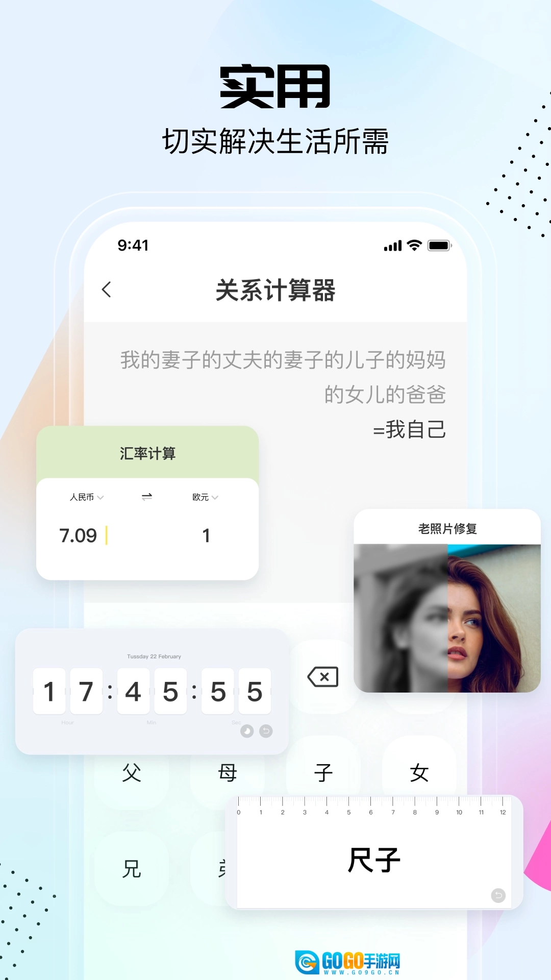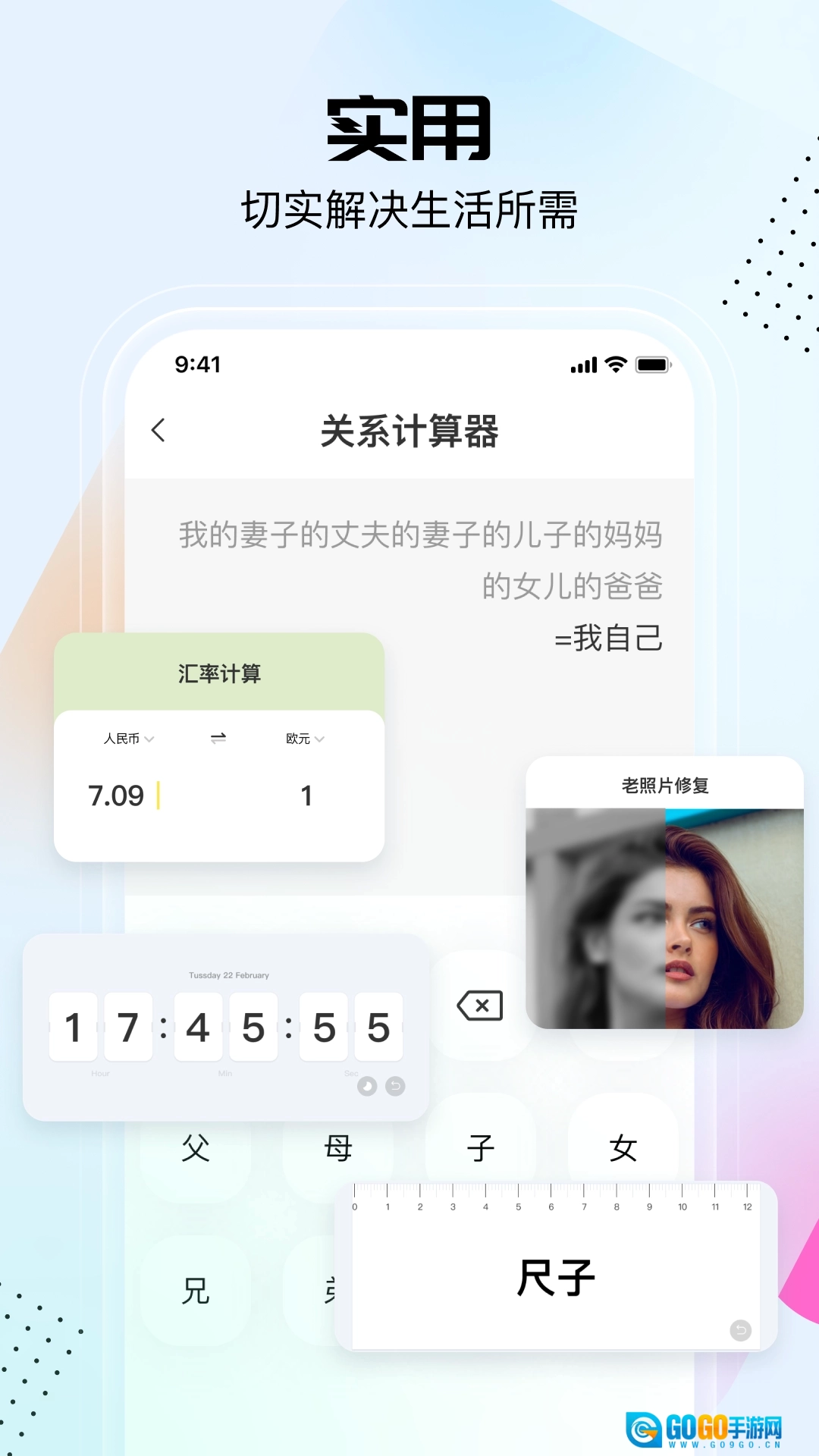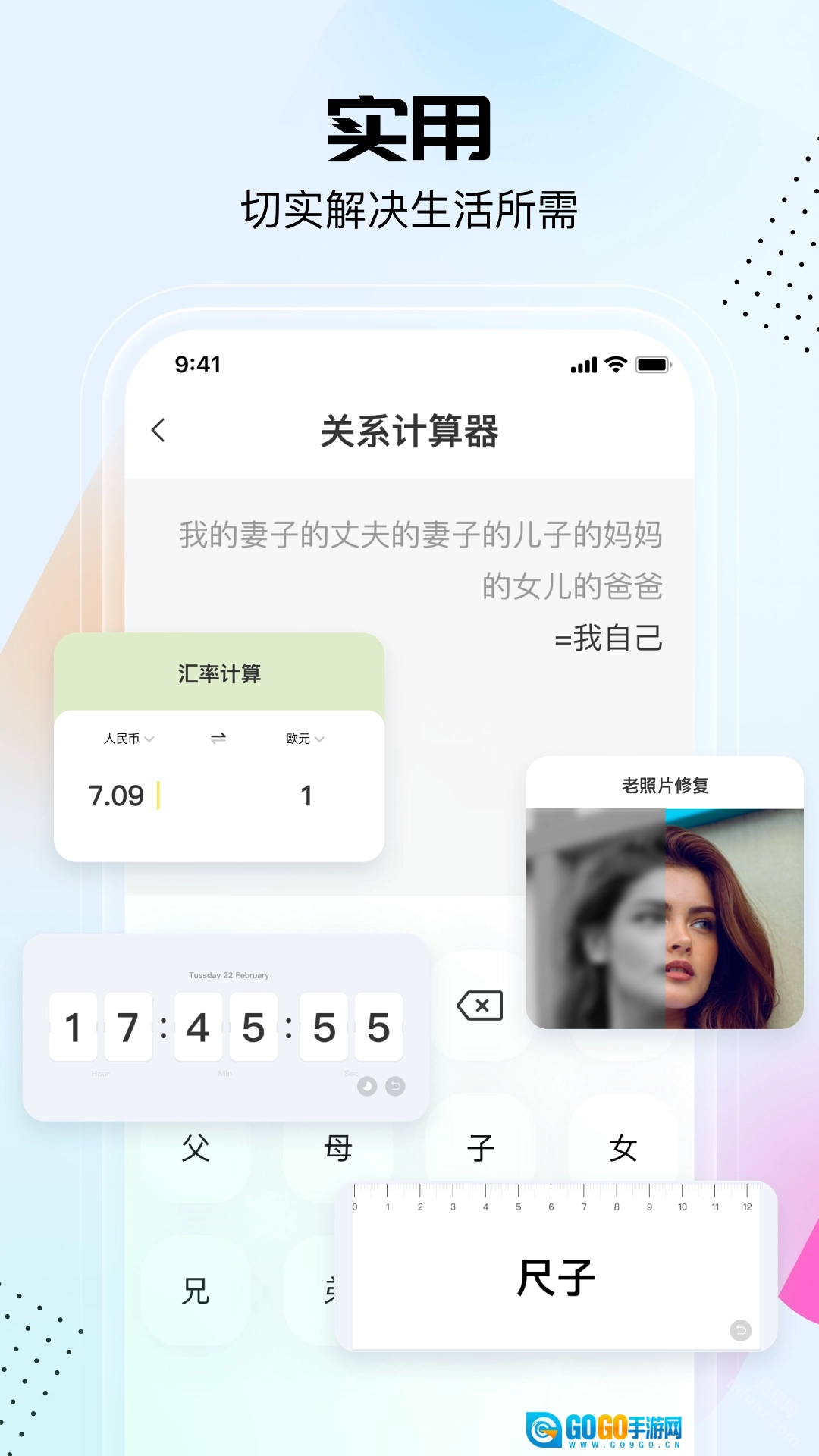 整合了日常所需、图片处理、信息查询、趣味游戏、计算功能、亲戚关系梳理以及老照片修复等各类实用工具