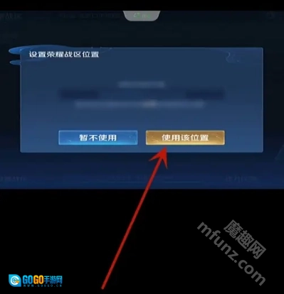 在荣耀战区位置设置窗口里,点击“使用该位置”就能完成战区的修改了。