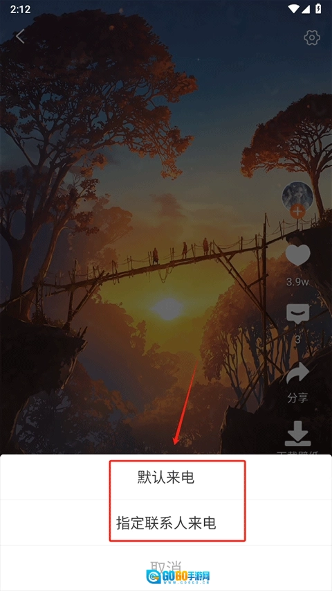 点击“设来电”后,选择设为默认来电或者指定人来电就可以了。