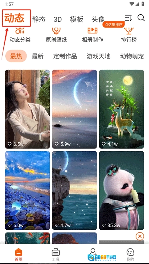 在首页进入动态壁纸板块,挑选心仪的动态壁纸并打开。