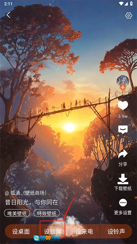在该动态壁纸上点击“设锁屏”功能即可。