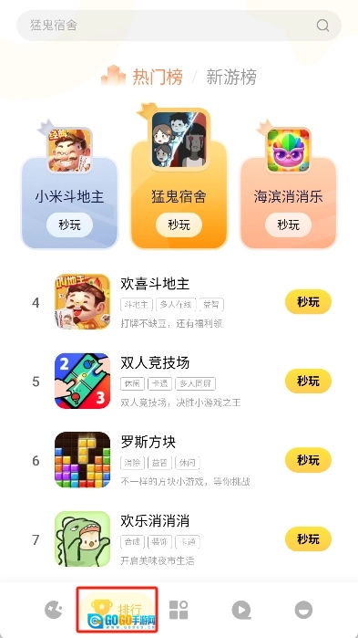 马上启动应用,在底部的导航栏里找到并点击“排行”选项,接着查看当下热门或者平台推荐的各类排行榜游戏。
