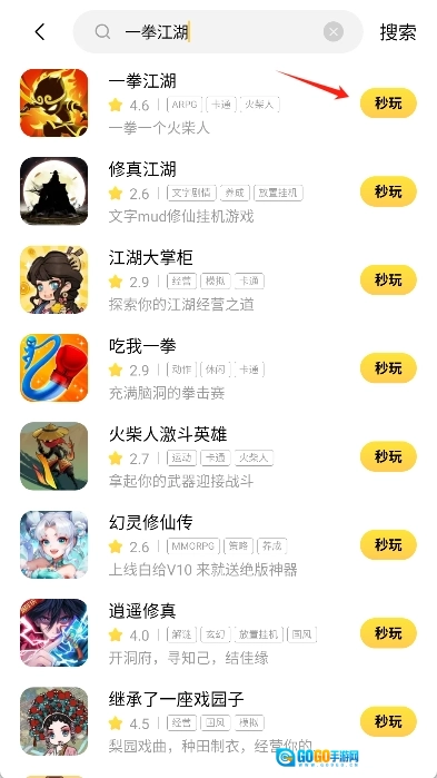 在游戏列表里点击游戏图标,或者选择“秒玩”按钮,就能直接进入游戏开始体验。