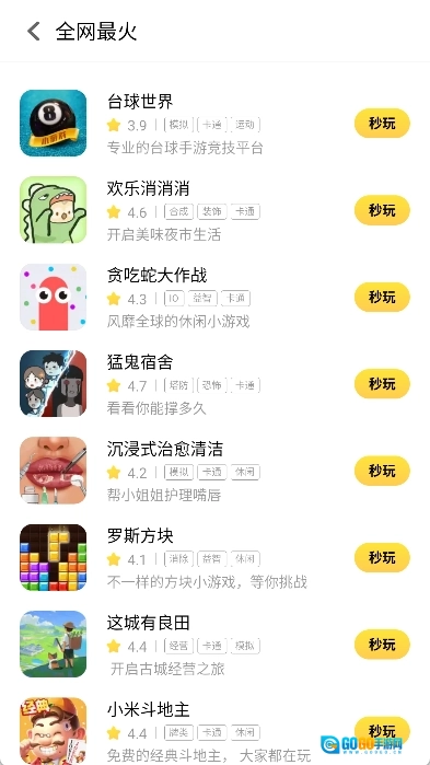 小米秒玩小游戏软件是一款稳定安全的手机小游戏中心应用,用户无需安装包就能直接启动游戏。该中心拥有丰富多样的游戏资源库,覆盖休闲、竞技、角色扮演等多种类型,支持实时更新和自动适配不同手机型号,保障玩家获得优质游戏体验。另外,软件还具备智能游戏推荐、实时排名等功能,助力玩家轻松找到热门游戏。