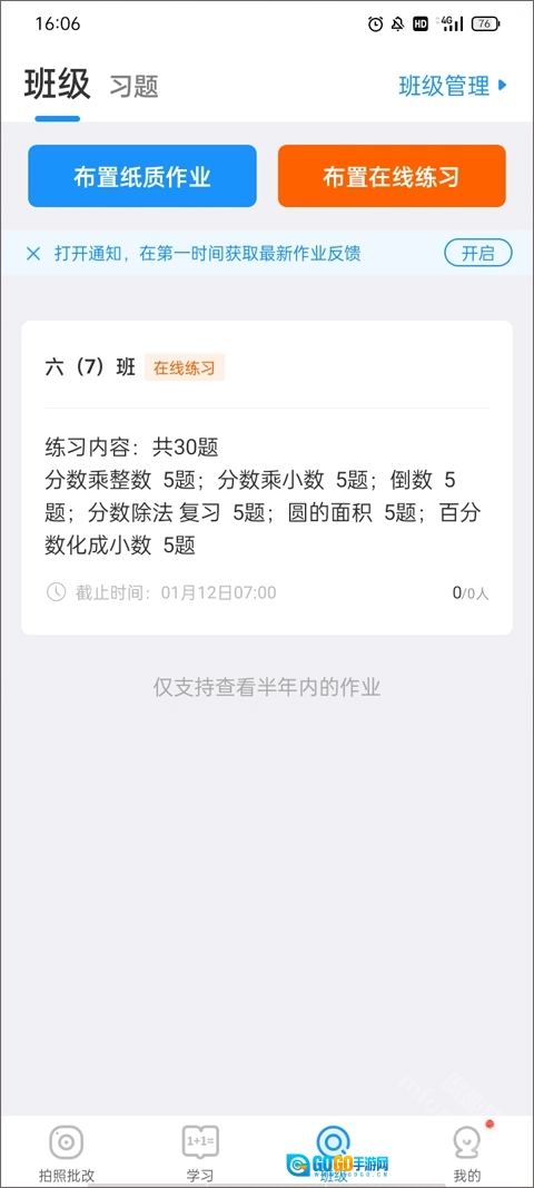 设置好练习后,就可以通知学生或家长了。需要注意的是,系统仅支持查看半年内的作业。