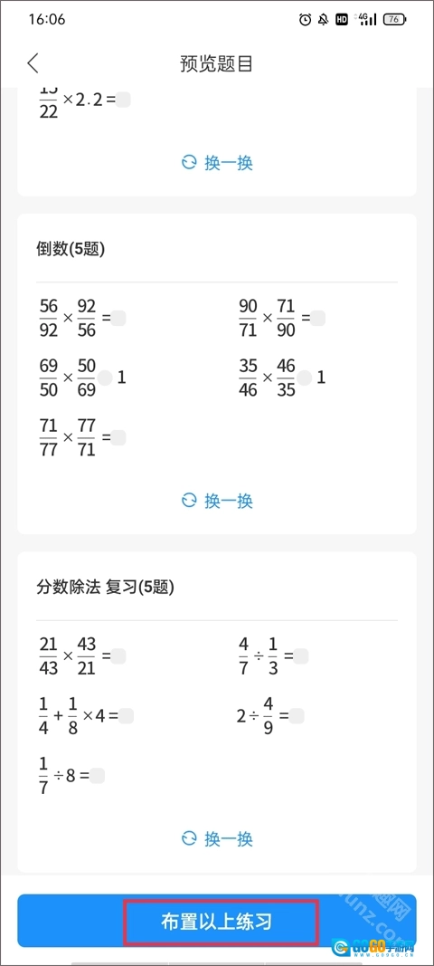 在预览题目时,你还能重新设置其中的题型,等确定好题目后,点击“布置以上练习”按钮即可。