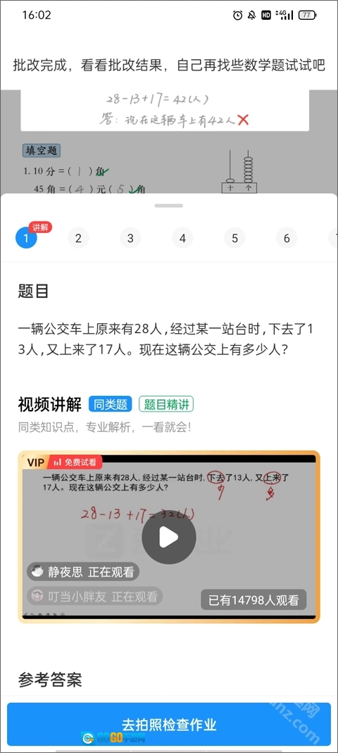 快速批改:学生完成作业后,只需拍照上传,便能在一秒内知晓哪些题目存在问题。