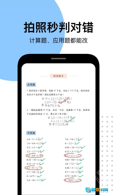 家长使用:便于家长检查孩子的口算作业,掌握孩子的学习进度及存在的问题。