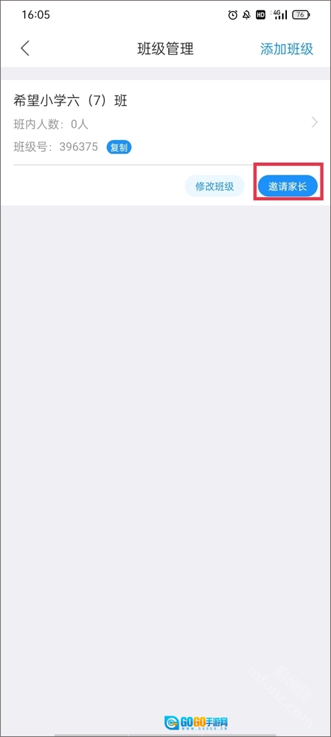 在班级管理页面,你能看到已添加的各类班级信息,接着点击页面下方的“邀请家长”按钮。