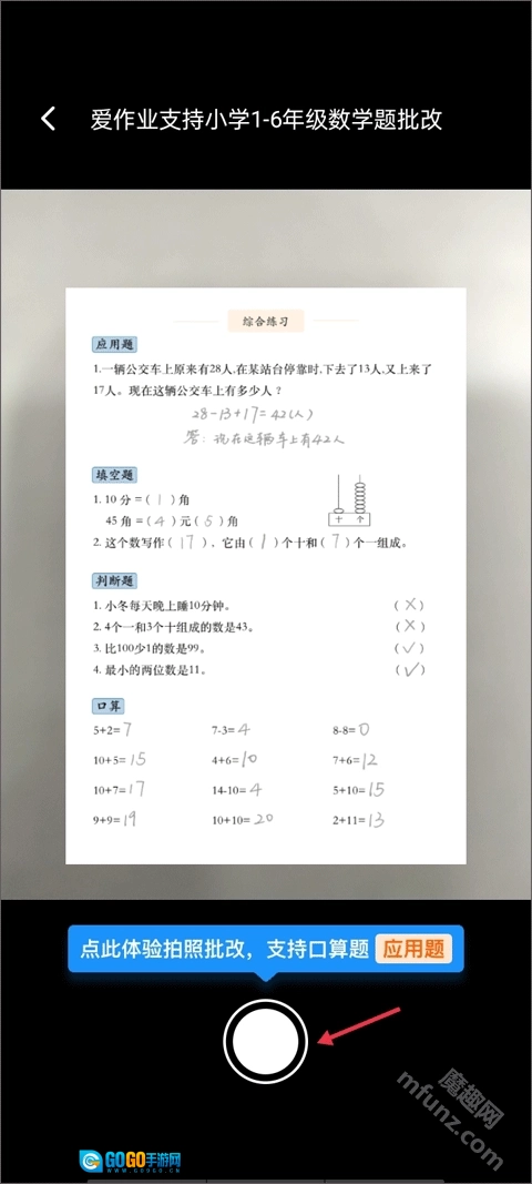 一秒批改:学生完成口算作业后,只需拍照上传,爱作业就能在一秒钟内给出批改结果,明确指出哪些题目存在问题。