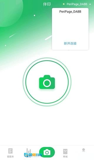 打开伴印应用,开启设备的蓝牙功能,然后连接对应的打印机。连接成功后,你可以在界面的右上角看到已连接的打印机标识。