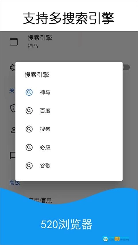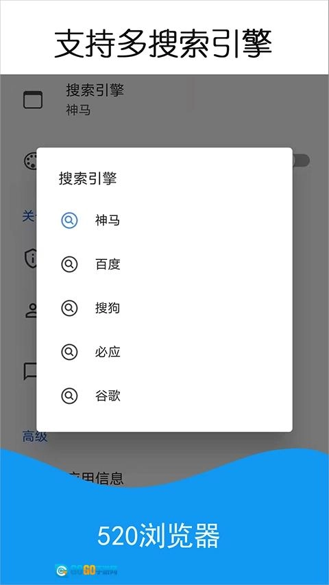 520浏览器是一款功能多样的手机浏览器应用,能为用户提供快速搜索、网页高速加载、无痕浏览、广告拦截等实用功能,同时具备清爽、省流、安全的浏览特性。它支持神马、百度、搜狗、必应等多种搜索引擎,还可依据用户偏好进行个性化内容推荐,让用户的上网体验更高效便捷。感兴趣的用户不妨下载520浏览器安卓版体验一番!