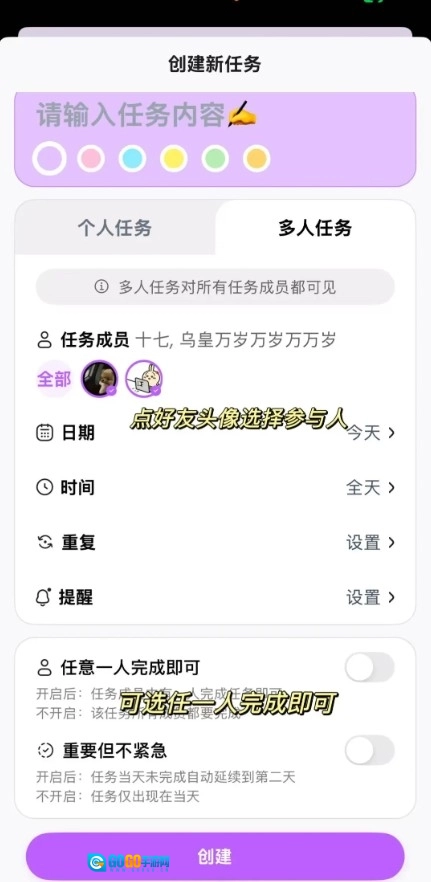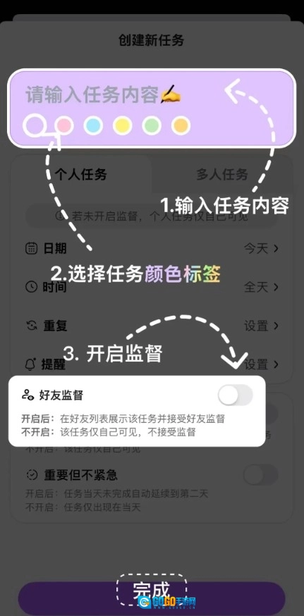 进入DuoDo后,用户可以马上创建新任务,并且能够依据实际需要来设定时间节点、提醒频率以及周期参数等相关内容。