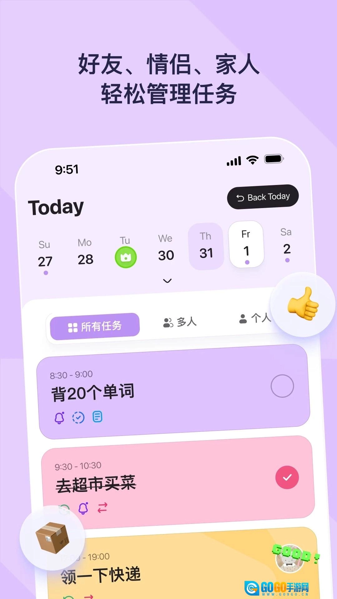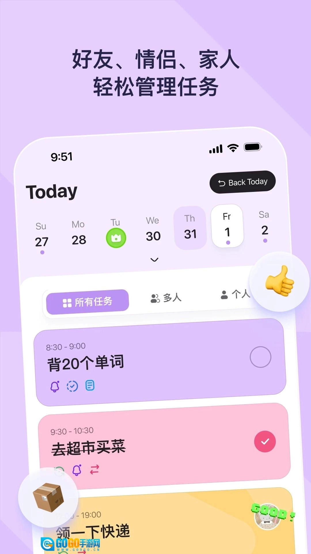 DuoDo是一款实用的日程管理记录软件,界面设计简洁,能帮助用户全面规划和管理生活中的各类目标、任务及日常琐事,助力提升效率。它针对日常清单、待办事项等琐事,提供随时随地清晰直观的管理方式,确保用户有条不紊地处理每项任务,享受更有条理的生活节奏。该软件功能丰富、选项多样,支持用户通过日历直接添加各类事件并及时提醒,可完全满足使用需求,有需要的用户欢迎使用。